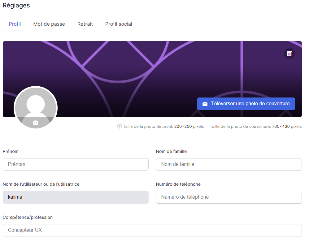 Les étudiants, à travers leur interface, peuvent suivre l’évolution de leur progrès, modifier leur profil, voir la liste des cours aux quels ils sont abonnés, voir leur liste de souhaits, leurs tentatives de quiz, participez à des questions réponses, etc.